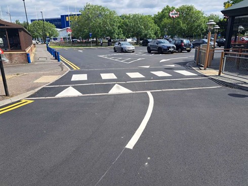 Car park resurfacing at McDonalds Car Park, West Quay, Southampton. Job involved the planing of existing surface, resurfacing and line marking on completion.