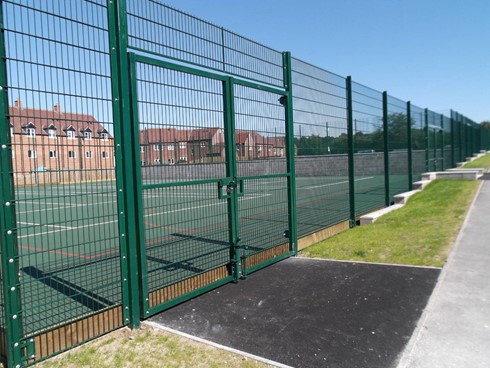 Fencing around a games area constructed for a secondary school in Marlborough.